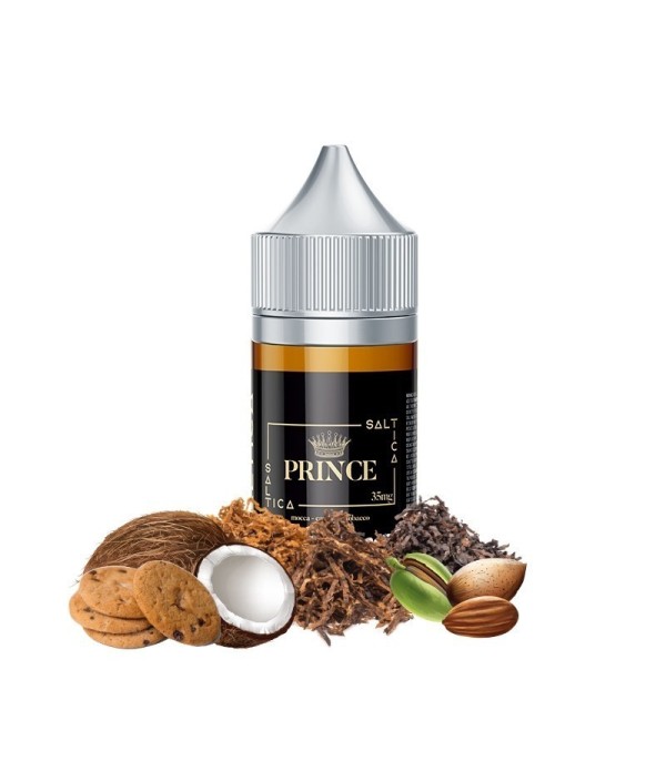 Saltica Prince Salt Likit: Hindistan Cevizi, Kurabiye, Badem, Tarçın ve Tütün aromalarıyla zenginleşen yoğun lezzet. Elektronik sigara keyfinizi özelleştirin!